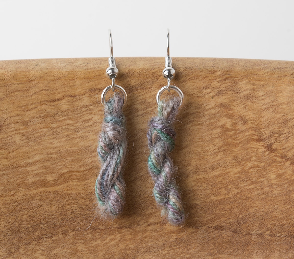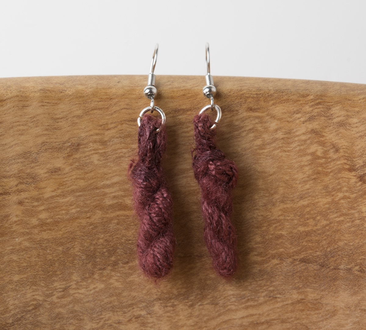 These beautiful earrings are hand made with hand-dyed 100% Tussah Silk Lace yarn. Each pair is unique and made with love.