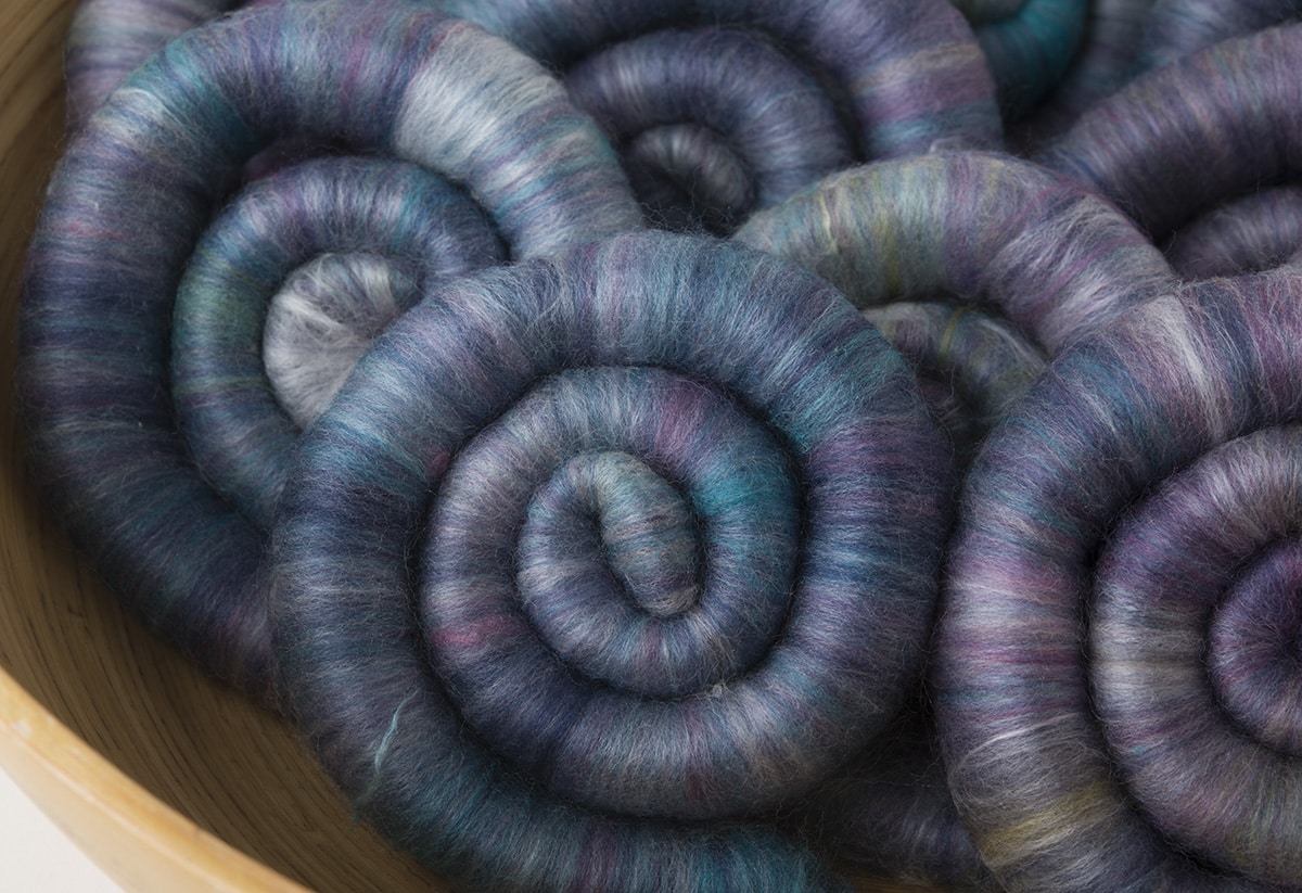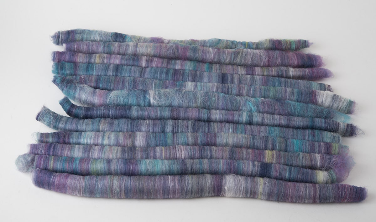 This tranquil rolag set is super soft blend of 80% Organic Polwarth and 20% Mulberry Silk and will be such a dream to spin. It weighs approximately 106 grams or 3.73 oz.